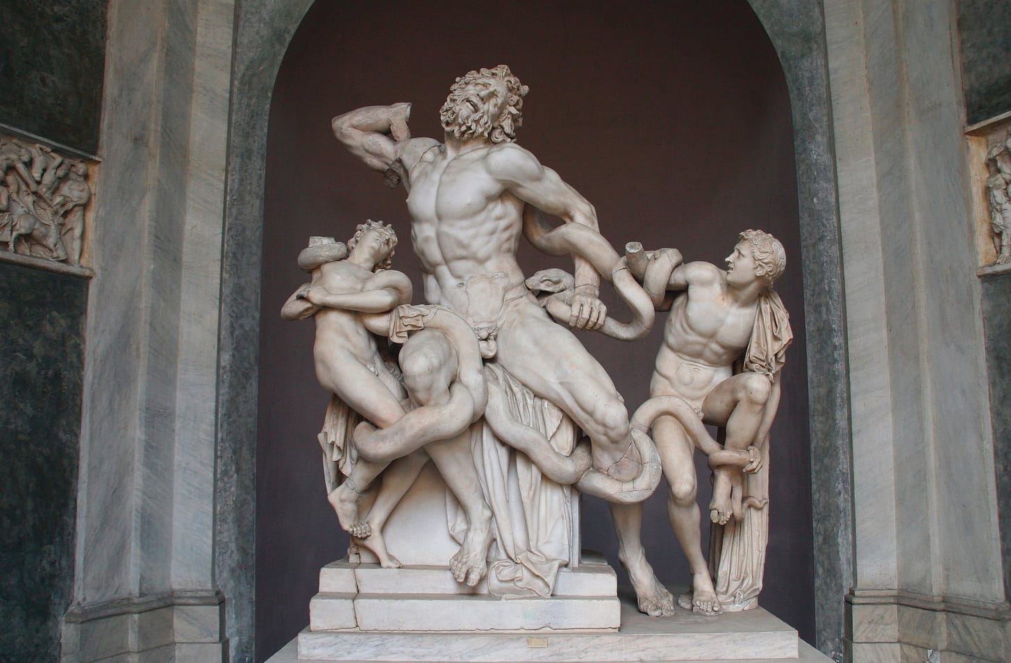 Enter the Greeks. Hegel also saw Greek art as naturally arising from their religion. However, unlike the Egyptians, Greek art did not 'serve' religion—it was religion. The Greek poets, not the philosophers or theologians, breathed life into the gods. If we look at Greek art, we see that the gods and heroes are depicted ideally, beyond the frailty we associate with the natural world. Aging, suffering from the cruel randomness of nature, ugliness, and misfortune—all these are absent from how the Greeks depicted the freedom of their gods and heroes. These figures are above nature and able to bend it to their will. The free spirit creates itself in the ideal form it desires, primarily as the perfect human figure. In other words, perfect subjectivity finds objective expression in the ideal forms of sculpture.