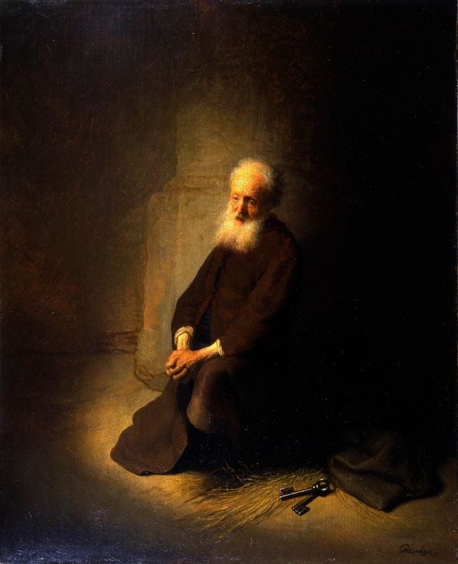 In contrast, Christian art introduced the ideal of embedding the "inwardness" of the creator into the creation itself. Rembrandt’s St. Peter (included) is an example of a figure who is, on the one hand, old and vulnerable—someone we empathize with, someone who has clearly experienced life and suffering—but on the other hand, remains beautiful, idealized. This type of art is what most of us intuitively recognize as a higher form of art, one that points to an "inwardness" that goes beyond the painting and the world around us. It is an inwardness we elevate. In some sense, this is the expression of grace in nature—simultaneously present in the world but also pointing beyond it.